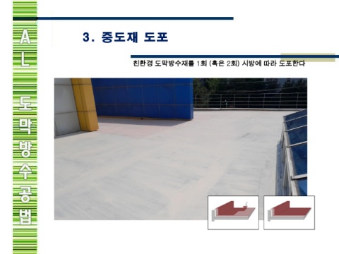 3. 중도재 도 포 친환경 도막방수재를 1회 (혹은 2회) 시방에 따라 도포한다